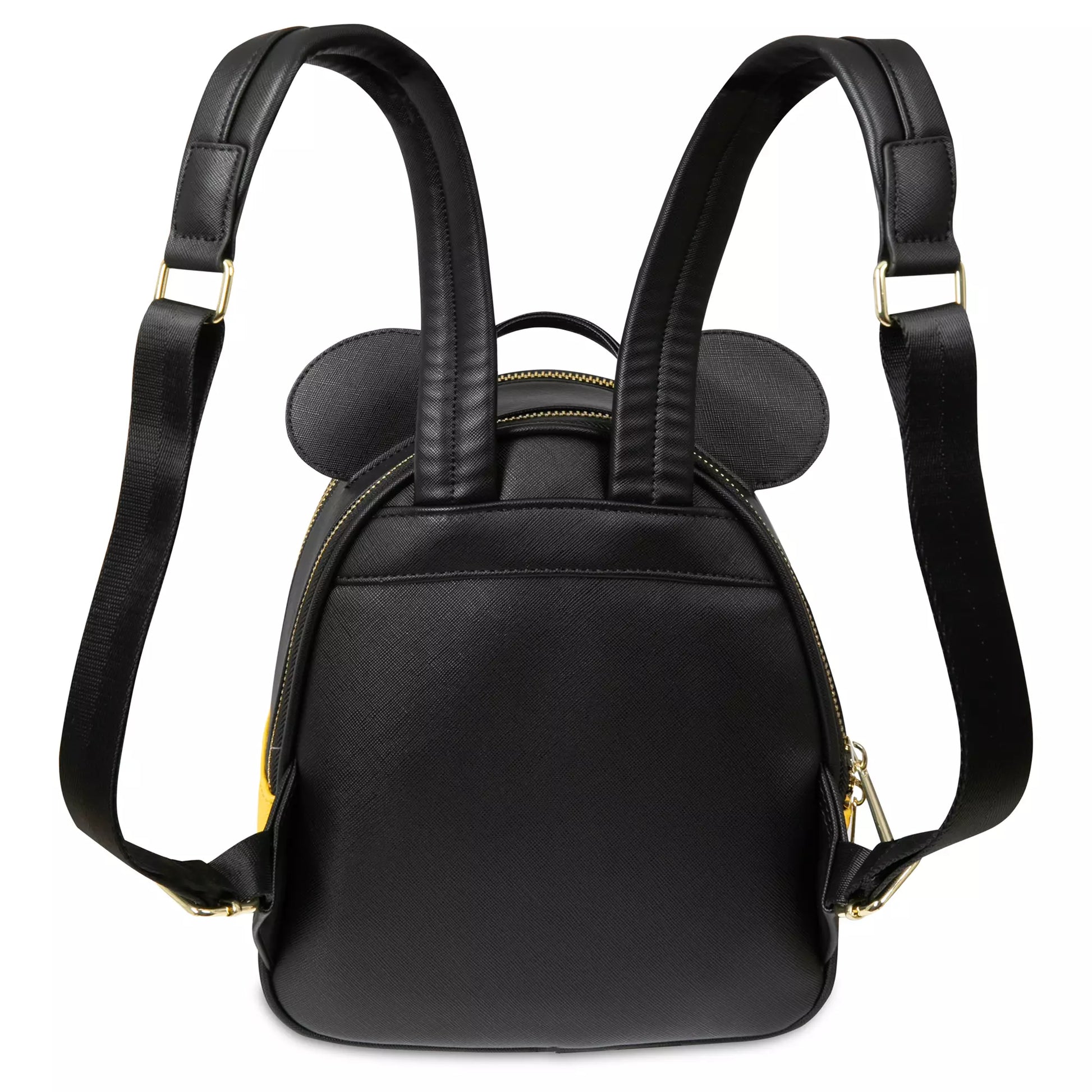 Inspired by his iconic shorts, this Mickey Mouse simulated leather backpack is long on style and convenience. Topped with 3D ears and featuring Mickey's ''signature'' printed on the front, this clever carryall also comes with a dangling Mickey glove bag charm. The main compartment has two double-zip openings and there's a front zip pocket for your must-have-right-now essentials. This backpack is sure to become one of them.