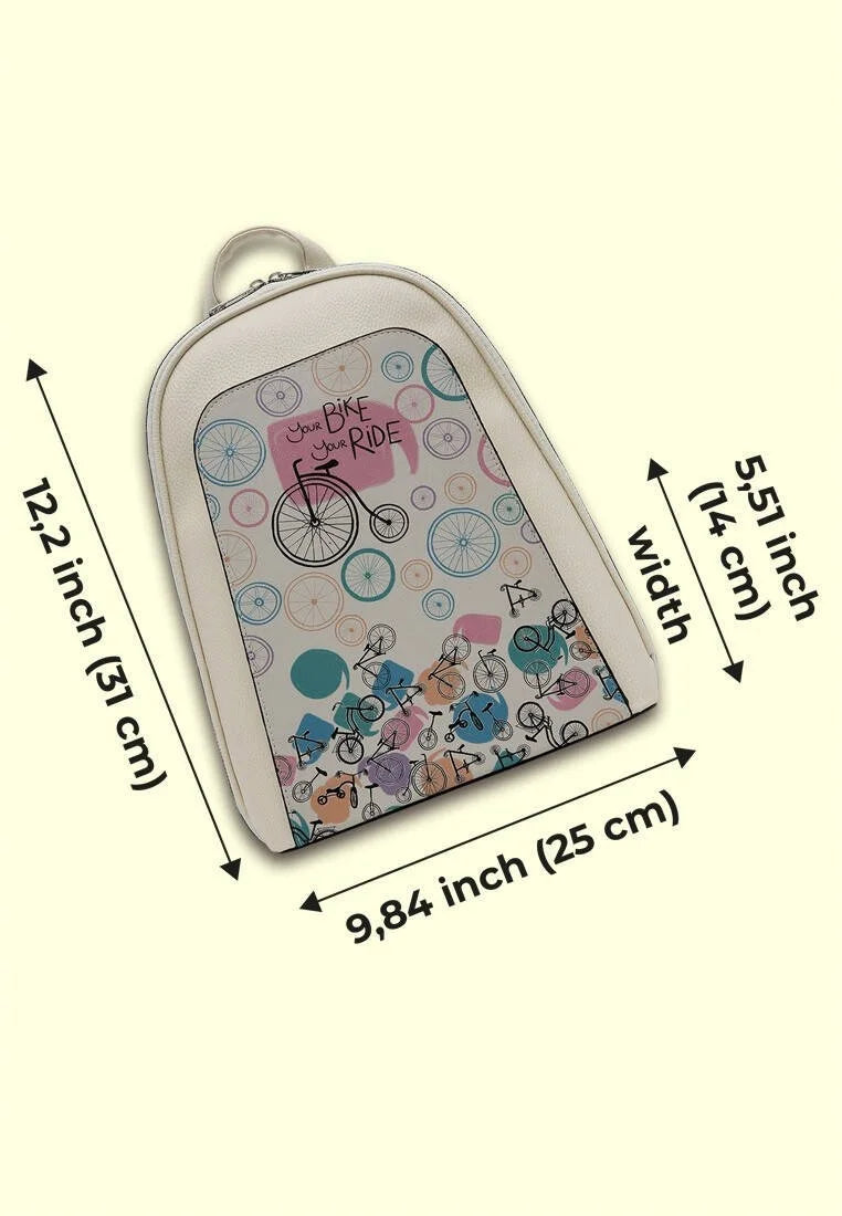 Check out Ride Your Bike design and soar anywhere! This vegan leather women's backpack will captivate you with its unique design and functionality. With its stylish and durable structure, Ride Your Bike is the perfect way to express your style and enjoy freedom.