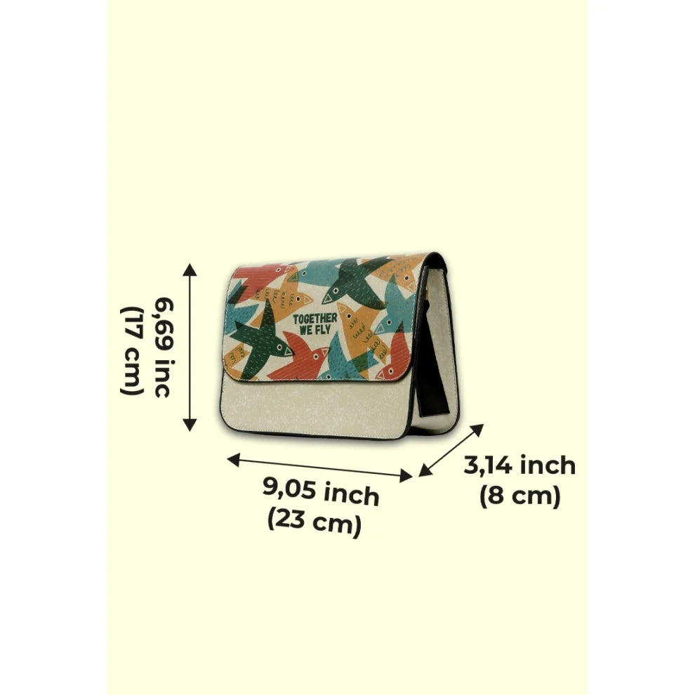 The women's vegan bag offers an energetic and colorful style with its "Together We Fly" design. This women's multi-coloured handbag stands out for its vibrant colours and dynamic details. The sleek and modern design of the Y-generation model makes it a great option for everyday use or special events. Made with vegan materials, it supports a sense of sustainable fashion and offers an eco-friendly choice. This shoulder bag is an ideal option for those looking for both aesthetics and functionality. The "Together We Fly" design complements your style, reflecting your elegance and environmental awareness.