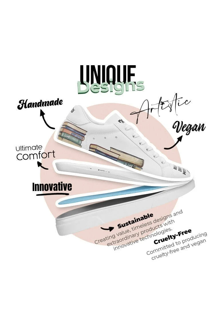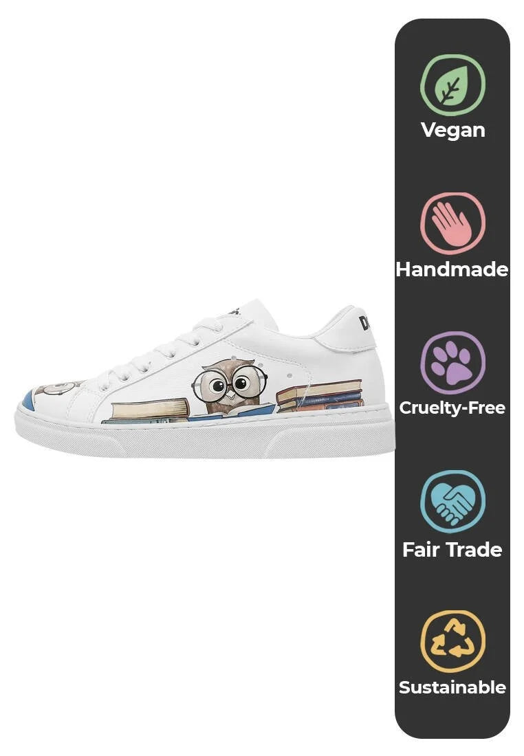 Women Vegan Leather White Sneakers - The Wise Owl Design