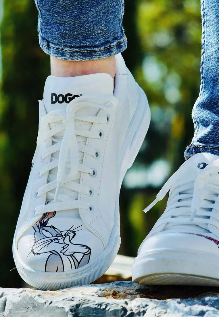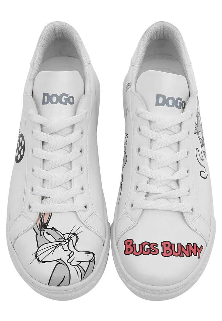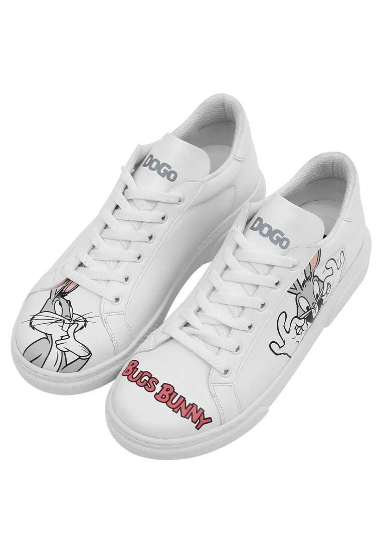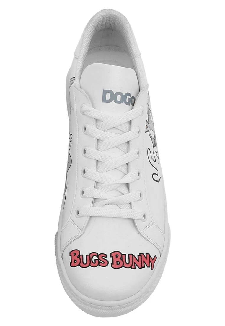 Women Vegan Leather White Sneakers - What's Up Doc? Bugs Bunny Design