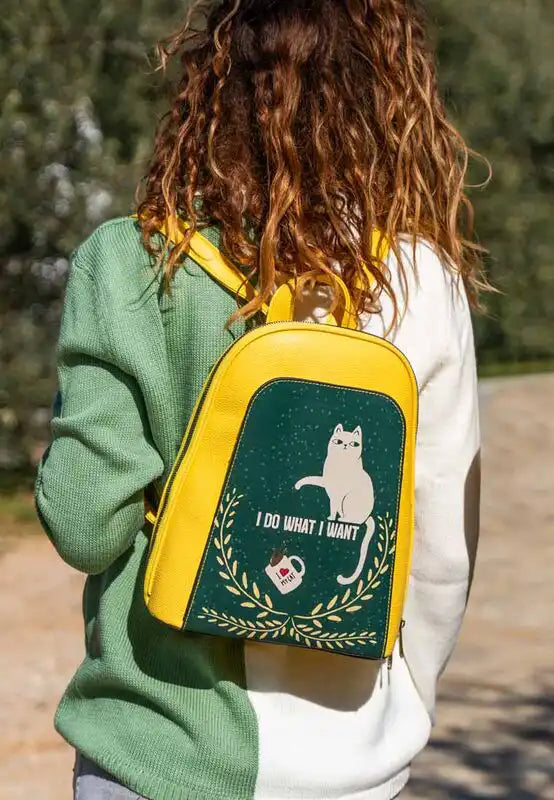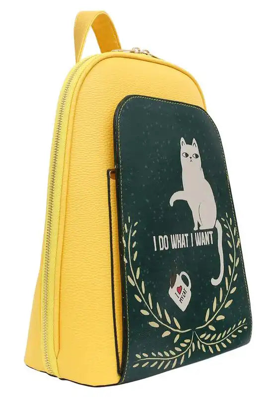 Women Vegan Leather Yellow Backpack - I Do What I Want Design