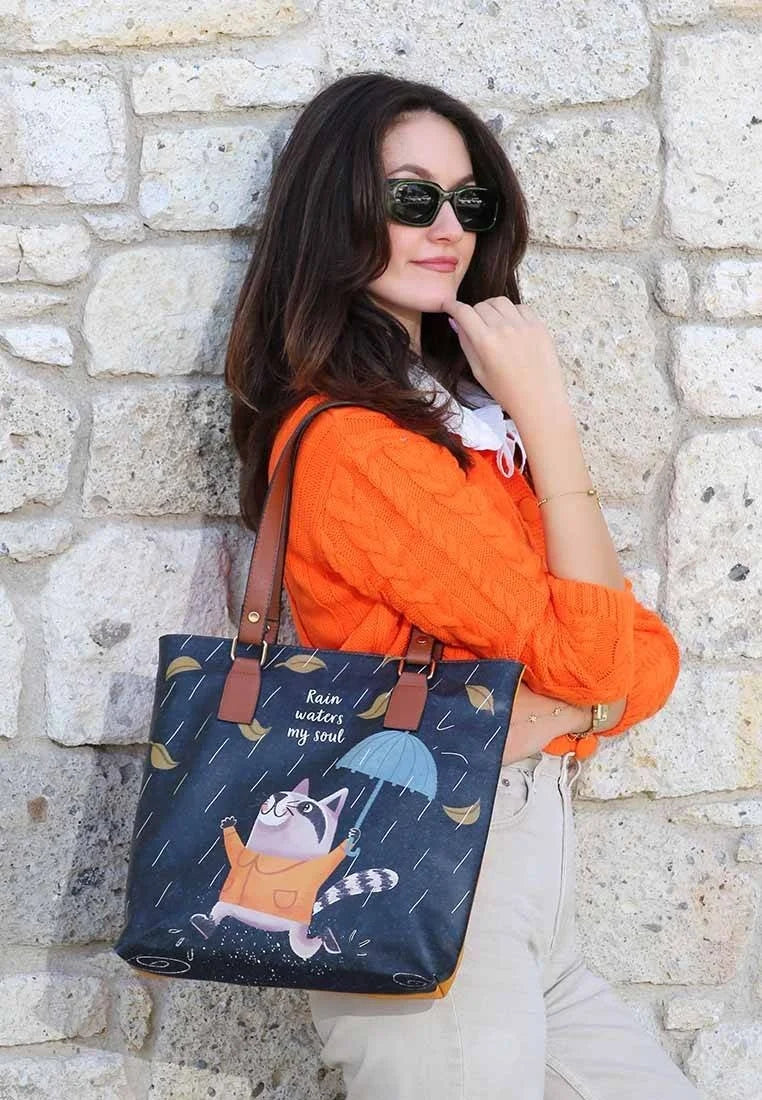The "Rain Waters My Soul" design draws attention with its women's vegan yellow shoulder bag, which combines elegance and natural beauty. This vibrant yellow "Multi Pocket Bag" model is made of high-quality vegan leather and offers a perfect option for daily use with